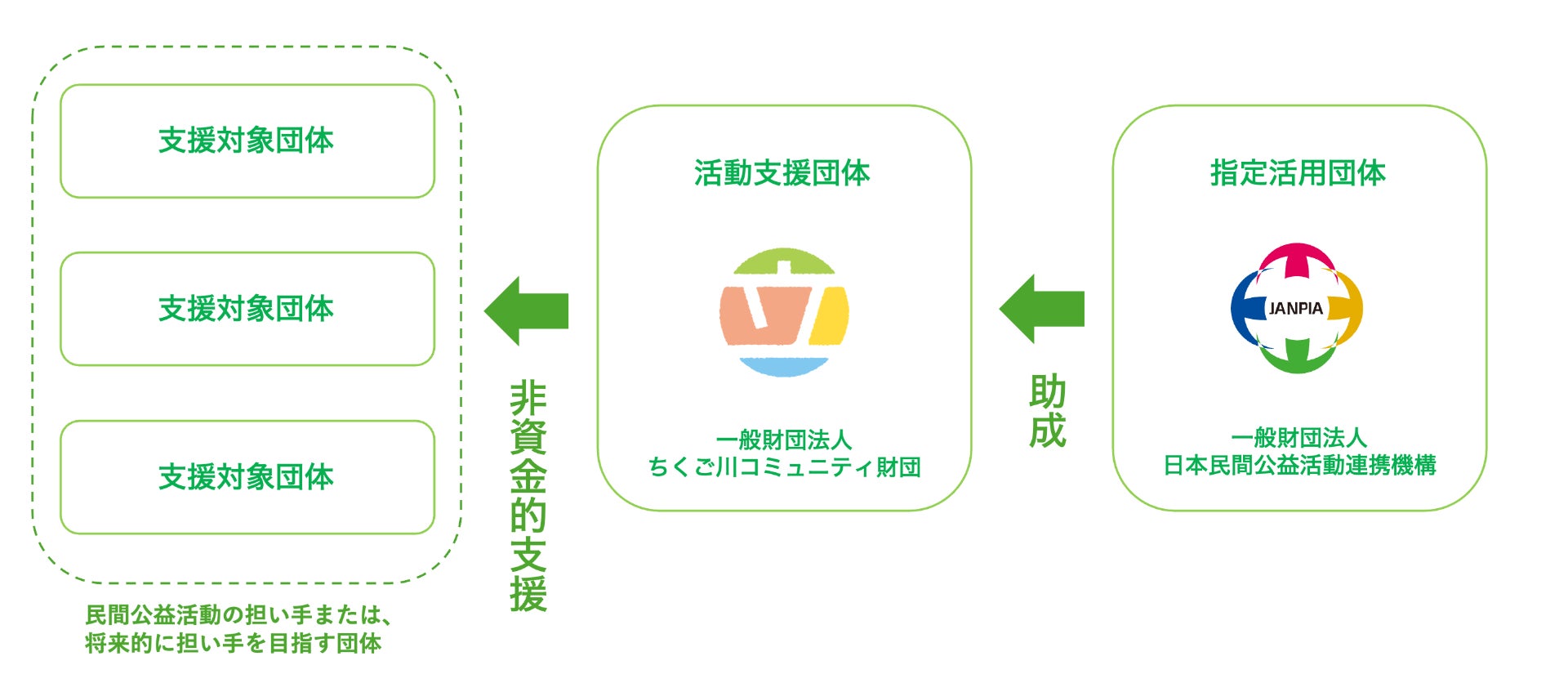 ※活動支援団体とはJANPIAからの助成を受けて、民間公益活動の担い手または将来的に担い手を目指す団体(支援対象団体)に対して、当該団体が抱える事業実施や組織運営に係る課題の解決を目的に専門的なアドバイス等の非資金的支援を行う団体を指します。