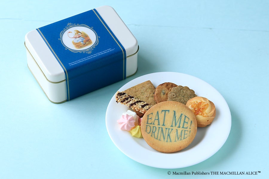 白ウサギを追いかけ不思議の国に迷い込んだ少女アリスが、個性豊かなキャラクターと出会い、冒険を繰り広げるストーリーと同じように、蓋を開けると目に入る物語のセリフが入ったクッキーの下には、心踊るティーパーティーをイメージしたクッキーが詰め込まれ、どれもパティスリーチームによりひとつひとつ手作りで生み出されるオリジナル。幅広い年代の方に愛され、多くの国で読まれている物語と味わいが交わるスイーツと共にお楽しみください。