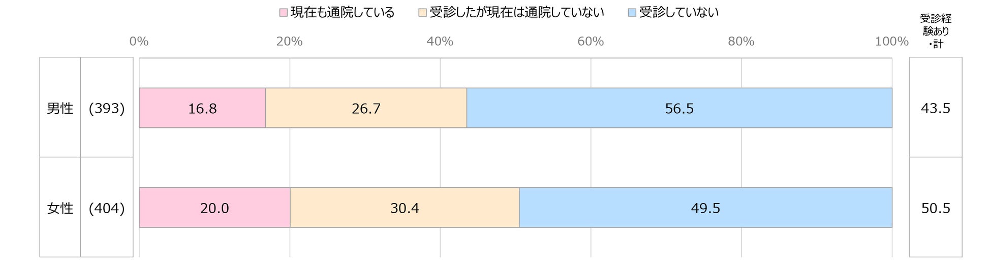 「病院に行くほどではないと思っている」が男女ともにトップであった(男性81.7%、女性75.9%)。