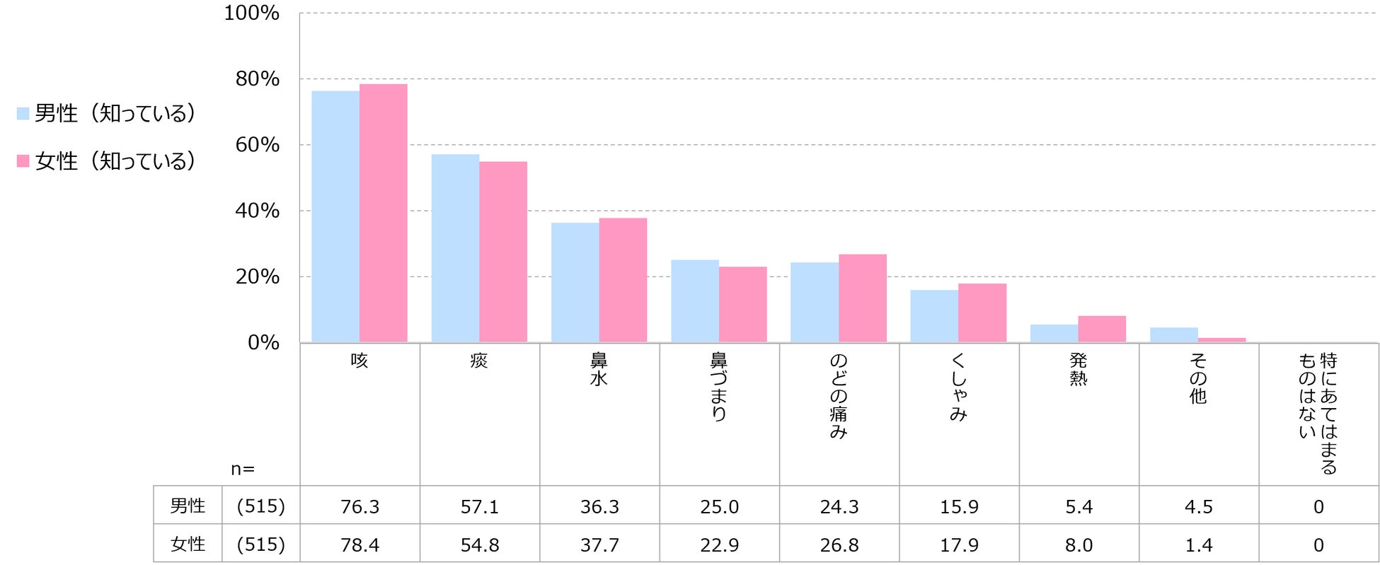 咳(男性76.3%、女性78.4%)と痰(男性57.1%、女性54.8%)が気になる症状として、上位にあがった。