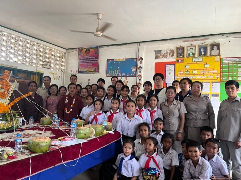 【大塚倉庫株式会社】社会貢献と社員教育を目的に、ルーム・トゥ・リード・ジャパンの支援国ラオスの小学校を視察、阿波踊りを披露