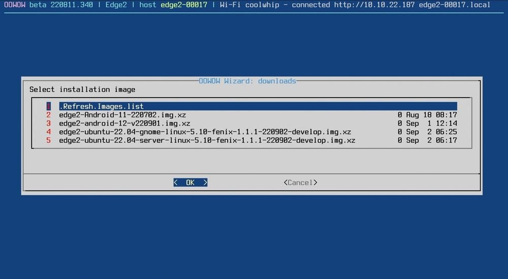 OSには Android 11/12 もしくは Ubuntu 22.04 を選択する事ができます。OSセットアップにはOSインストーラーOOWOWが組み込まれているため、ボード単体でOSのインストールまで行う事が可能です。