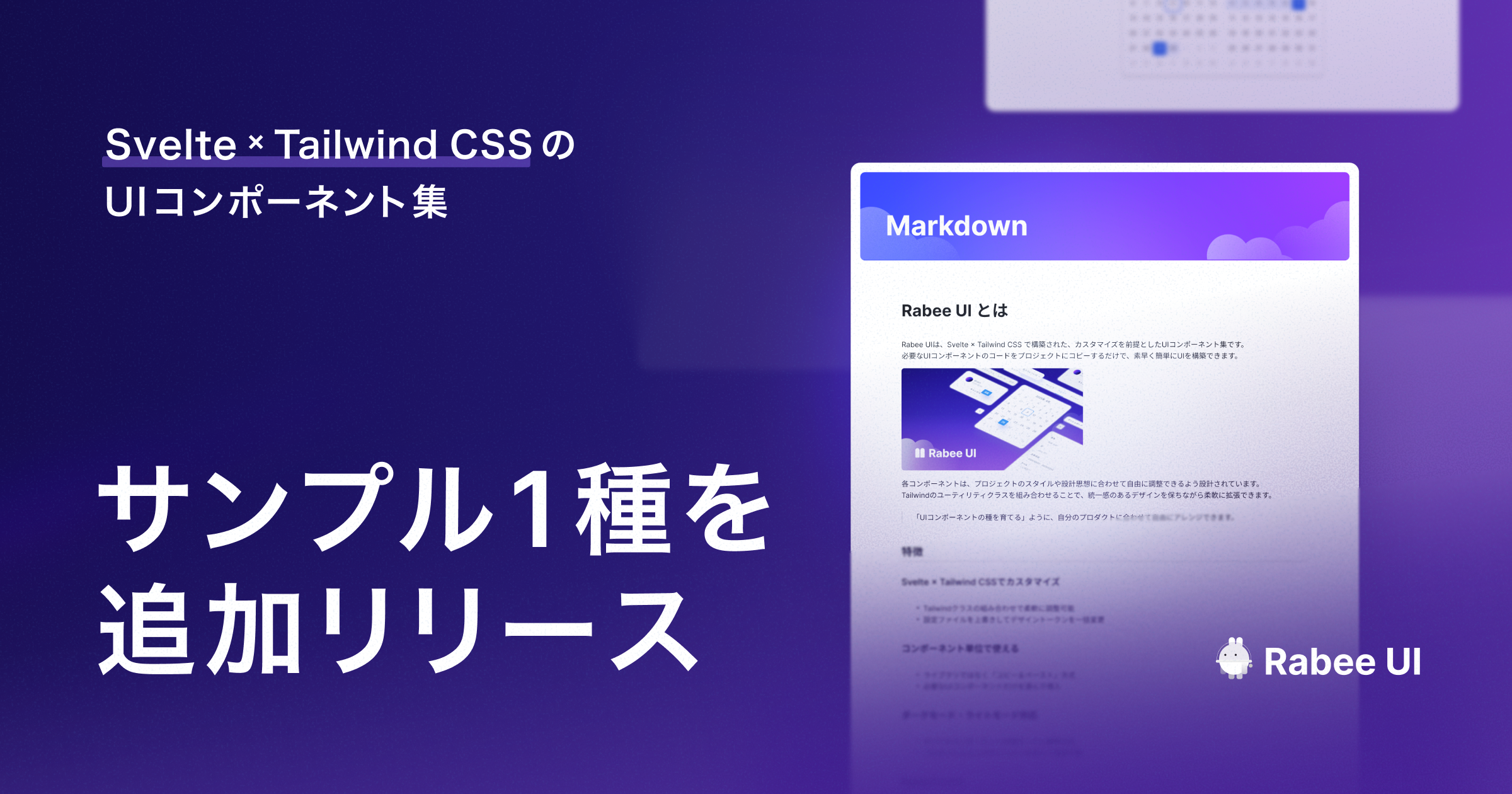 Svelte × Tailwind CSSのRabee UI、「Markdown」のサンプルを新たに追加。既存コンポーネント2種もアップデート