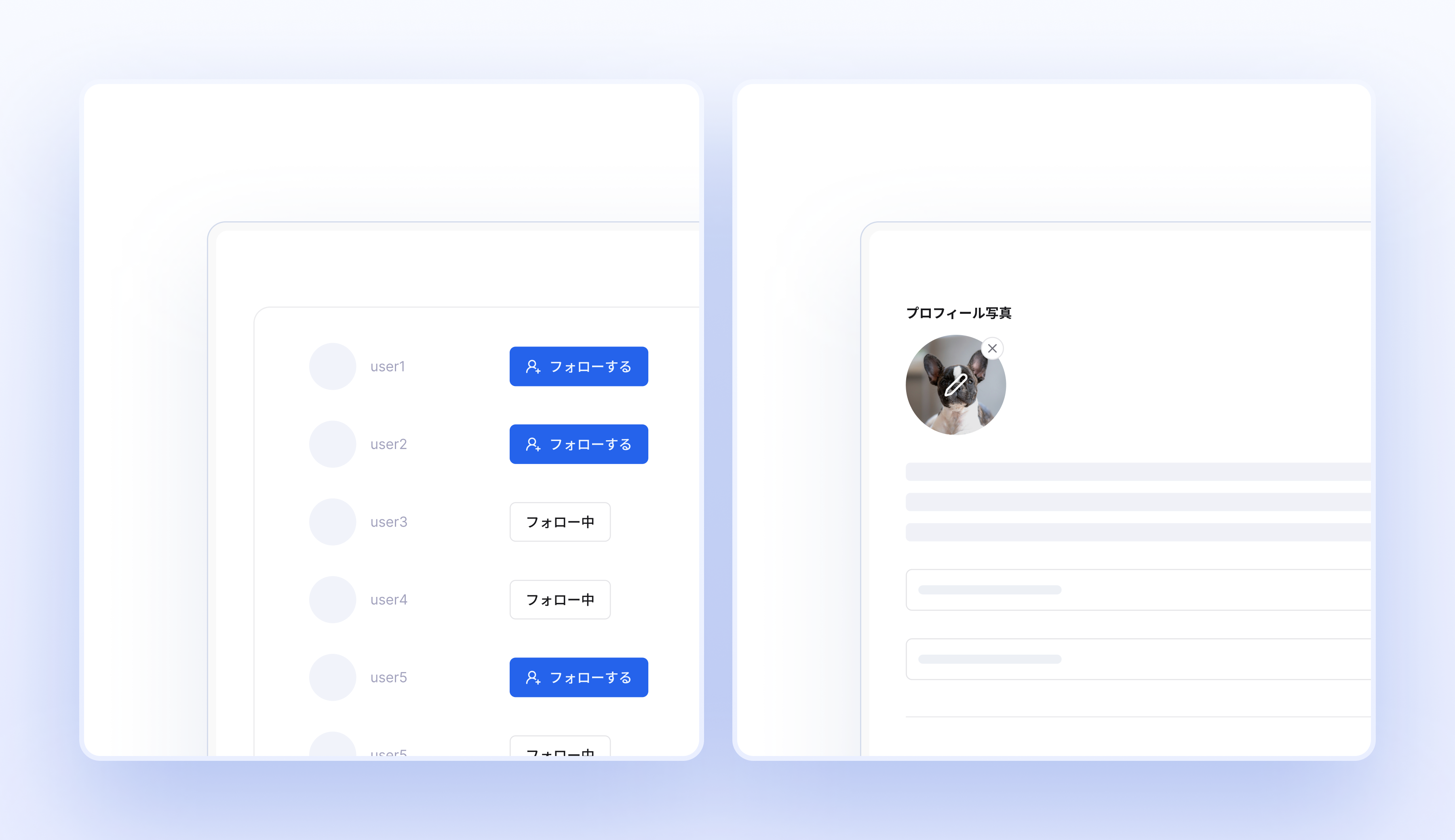 具体的には、Buttonには新たに「Toggle Button」として、SNSのフォロー/フォロー解除のようにユーザーのアクションに応じて状態が切り替わるボタンの実装例を追加しました。Image Uploaderには、一度アップロードした画像を任意で取り消せる「Clearable」機能を追加しました。