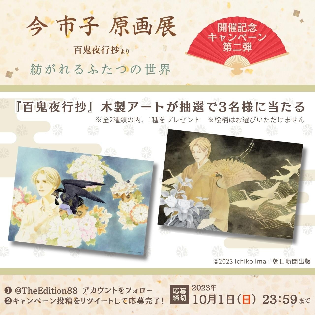 「今市子原画展」開催記念として、EDITION88公式X(旧Twitter)アカウントをフォロー&リツイートで、抽選で3名様に「百鬼夜行抄 木製アート」が当たるプレゼントキャンペーンを実施いたします。
