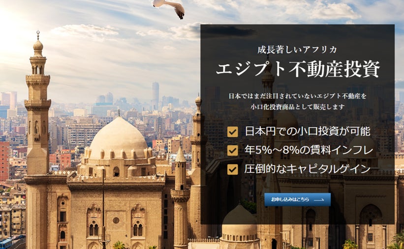 エジプト不動産ファンドは、1口120万円:2口からエジプト新都市に建設されるランボルギーニレジデンスに投資ができるサービスです。投資するにあたり物件概要から契約まで、すべてオンラインで完結するため、気軽にエジプト不動産への投資が始められます。