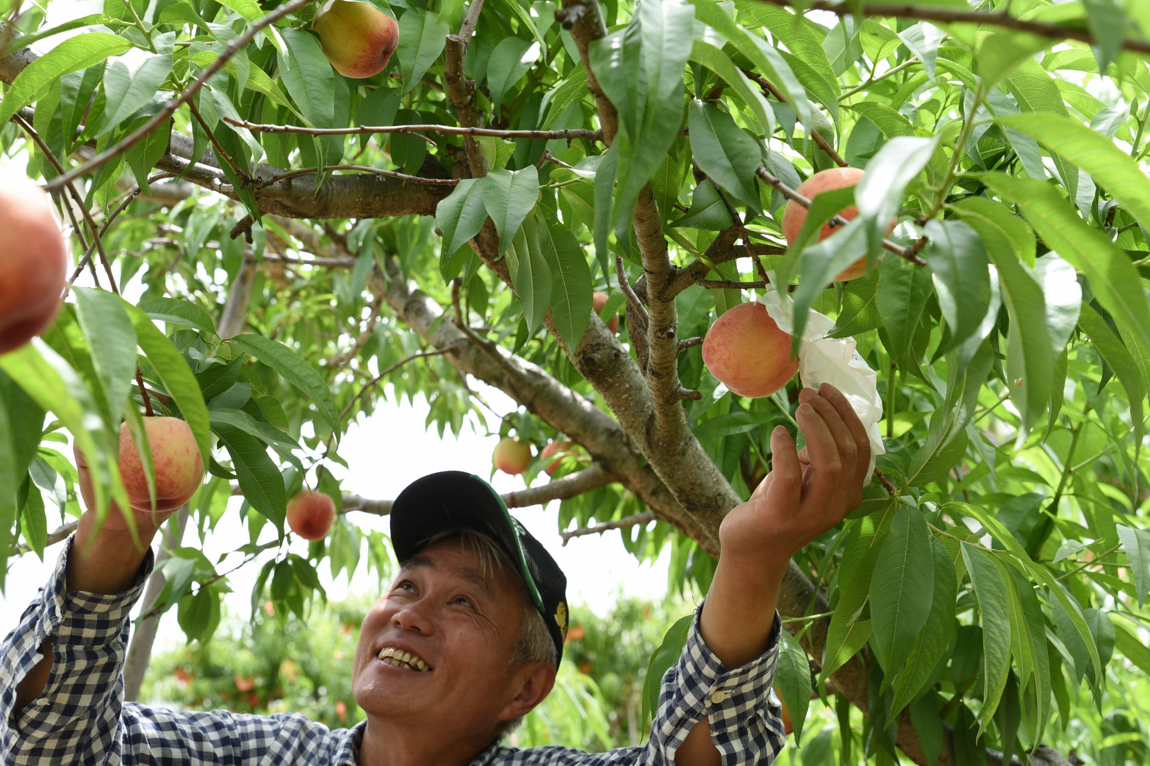 収穫作業にあたっている山口さんは「今年は雨が少なく、少し心配していましたが、順調に育っていると思います。このおいしい桃を多くの人に味わってもらえれば」などと話していた。
