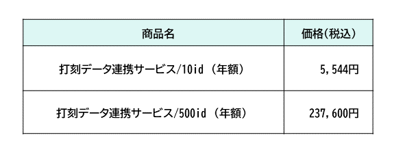 ・打刻データ連携サービス /500id (年額):237,600円(税込)