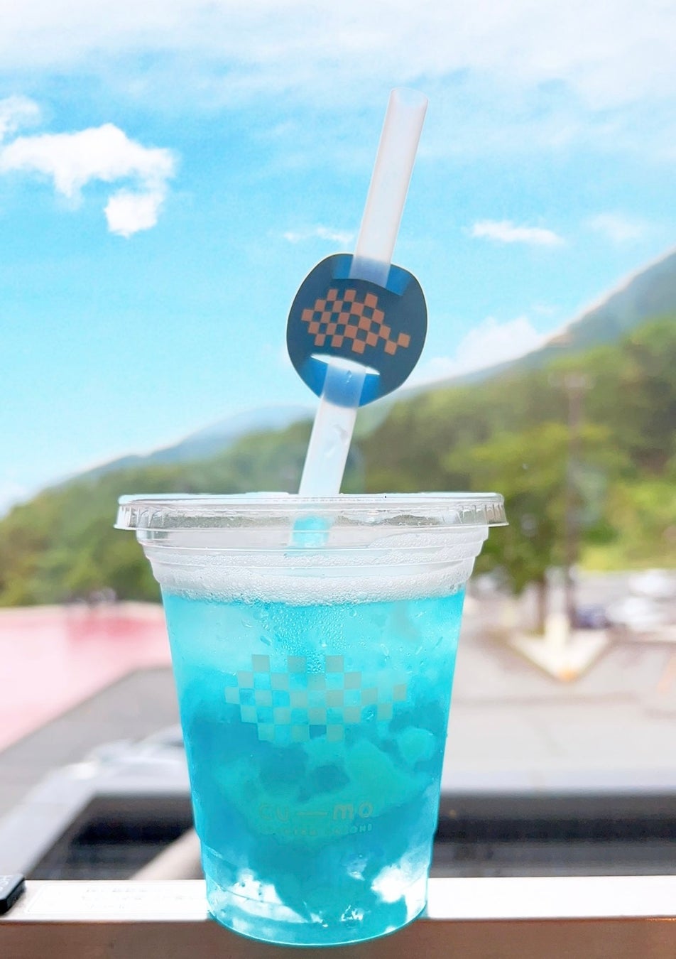 このドリンクは、cu―mo箱根の展望テラスから青空に浮かぶ白い雲(cumo)を眺めながら、雲を飲んだら、どんな気持ちになるだろうという思いから、ドリンクカップの中に青空と白い雲をぎゅっと詰めこみました。青い空と白い雲をそれぞれゼリーで表現し、cu―moショップで人気の爽快感、すっきり感のある「湯上り堂サイダー」1本を注ぎました。こころがうきうきになる「晴れときどきcumoサイダー」のさわやかな炭酸と青空に浮かぶ雲の食感をお楽しみください。