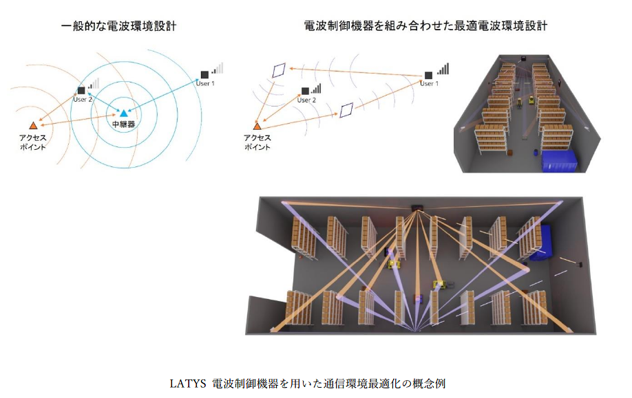 一方、提携先のLATYSも独自の電波制御機器を事業化すると共に、その有効活用の為の「機器最適配置化ツール(シミュレーション)」の開発にも着手しております。これにより従来は経験則であった、良好な通信環境を得るための電波制御機器配置及び施工の自動化が可能となります。