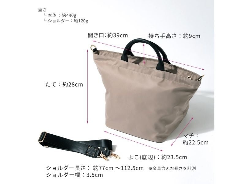 ショルダー幅:3.5cm、重さ:本体 :約440g、 ショルダー:約120g