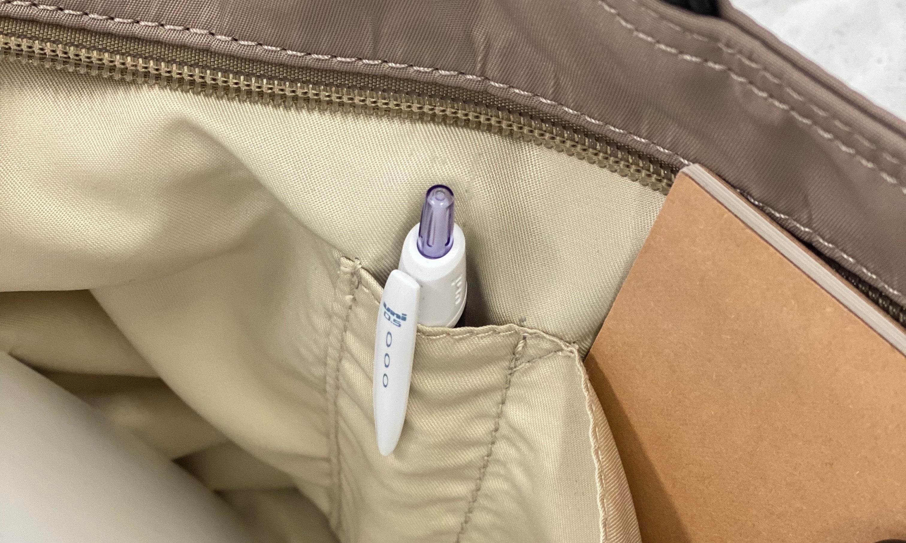 本体より明るめの配色でバッグの中の視認性を高くし、バッグの中の迷子防止になるように対応しました。