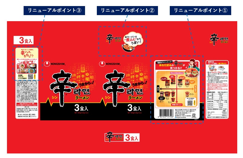 辛ラーメンのさまざまな種類や食べ方があることを知ってもらうため、パッケージデザインをリニューアル