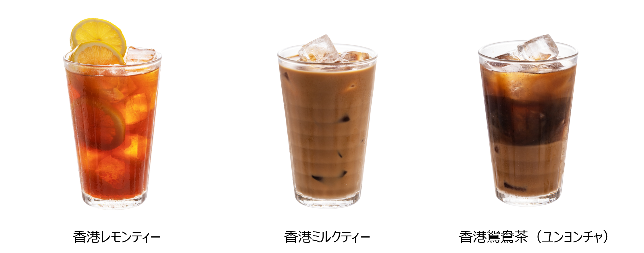 香港レモンティー・香港ミルクティー・香港鴛鴦茶(ユンヨンチャ)・香港コーヒー・ウーロン茶・コーラ・ジンジャエール