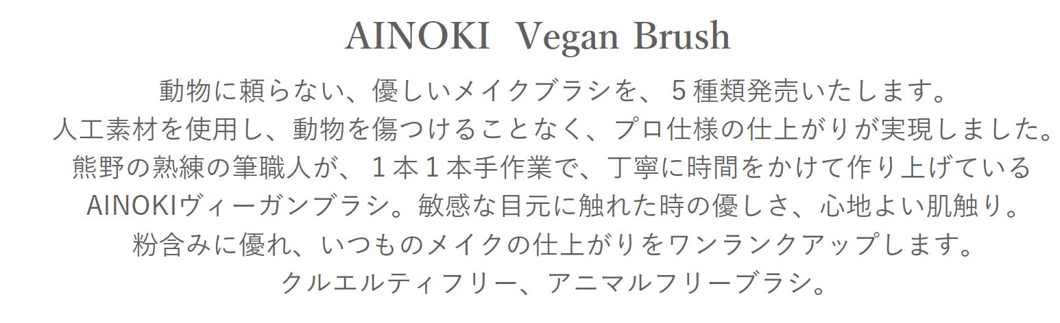 動物にも、人にも優しいメイクブラシがAINOKIから新登場。熊野の熟練の筆職人が、丁寧に手作業で作り上げるヴィーガンブラシ。いつものメイクの仕上がりをワンランクアップ!