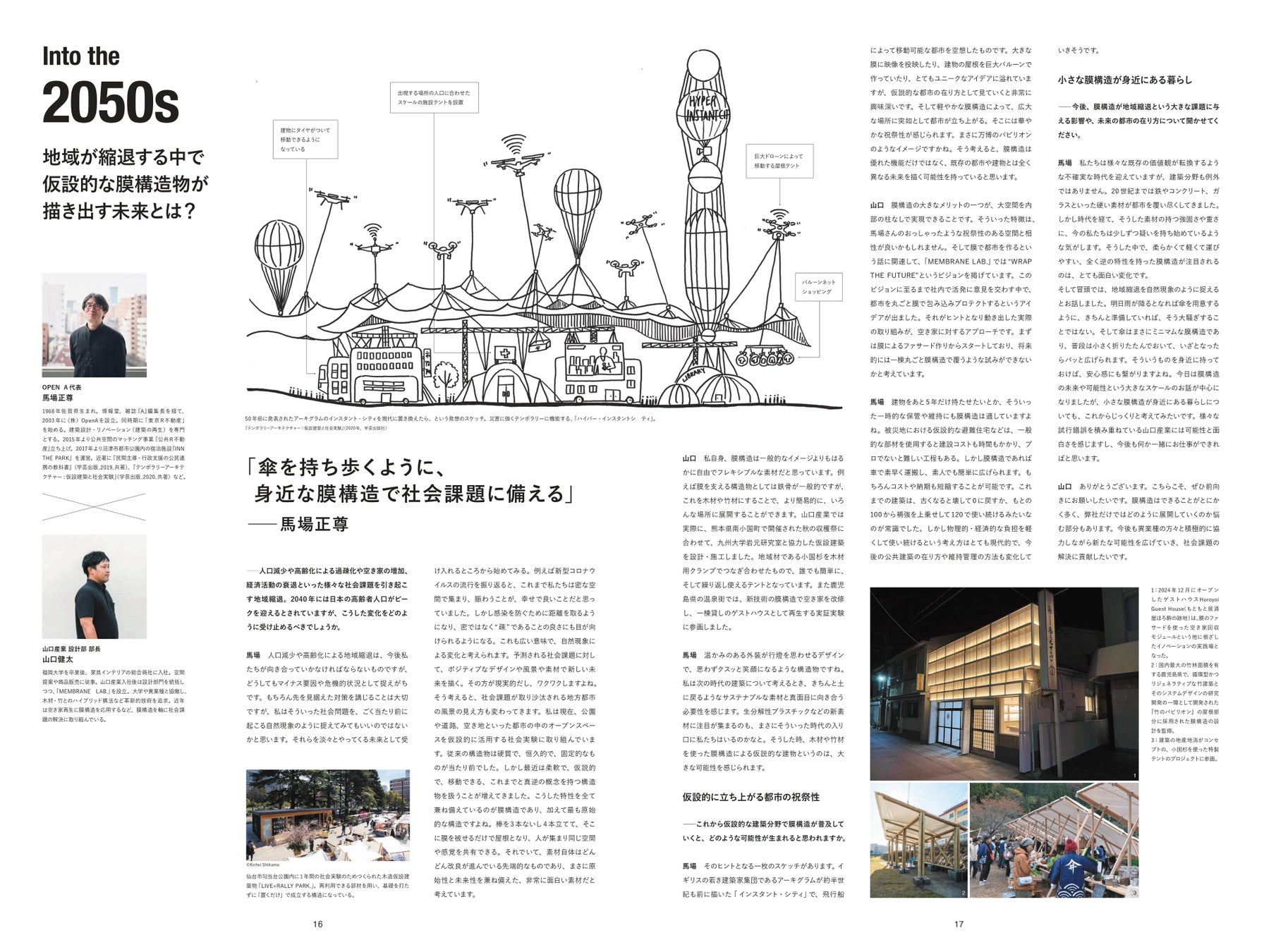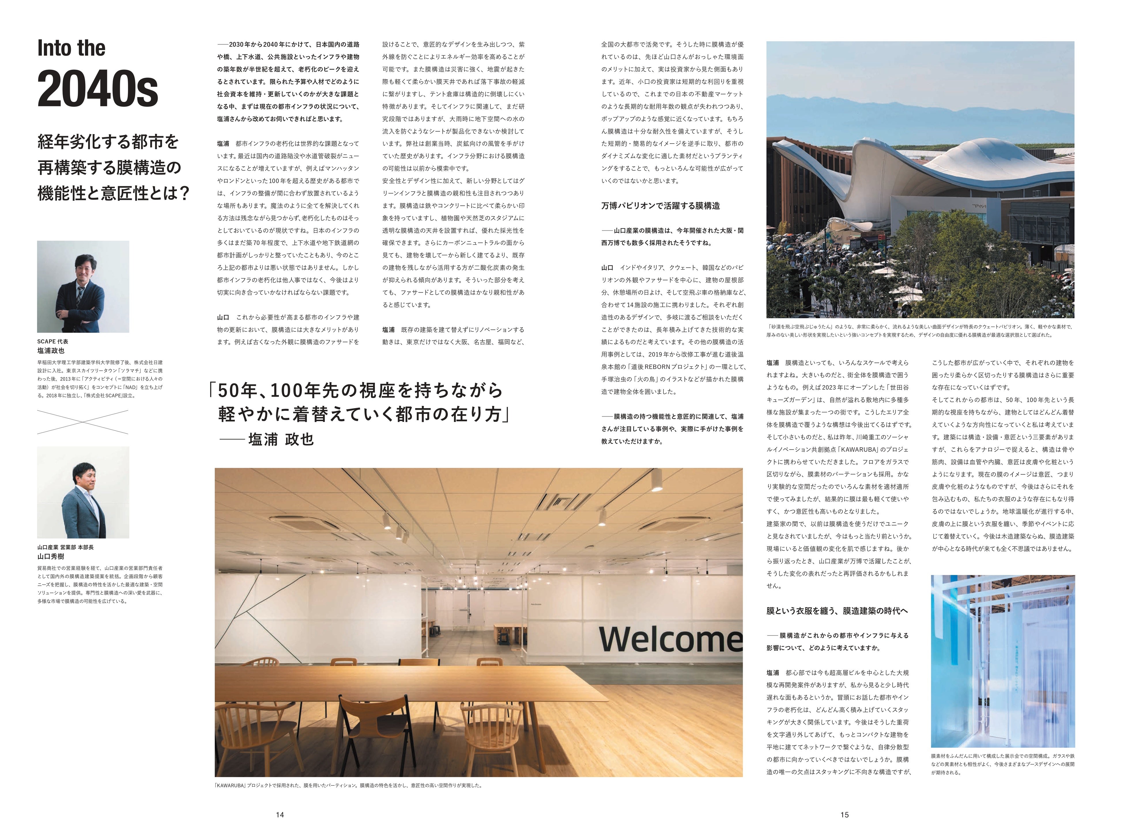 本日公開された記念誌「MEMBRANE LAB. - Active Report vol.5」では、50年の歴史に加え、膜という素材が未来の社会課題をいかに解決するかを、各分野の専門家との対談を通して提示しています。
