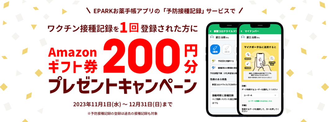 「EPARKお薬手帳」予防接種記録サービスのご案内とキャンペーンのお知らせ
