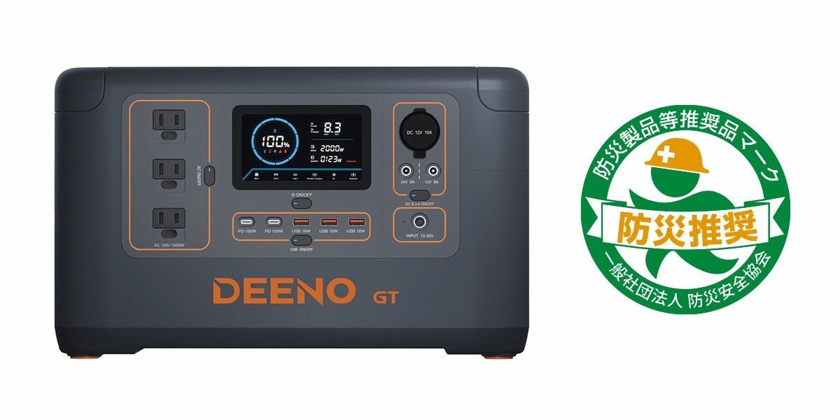 安全性の高いリン酸鉄リチウム電池を搭載したポータブル電源「DEENO S1500」が「防災製品等推奨品」に認証されました