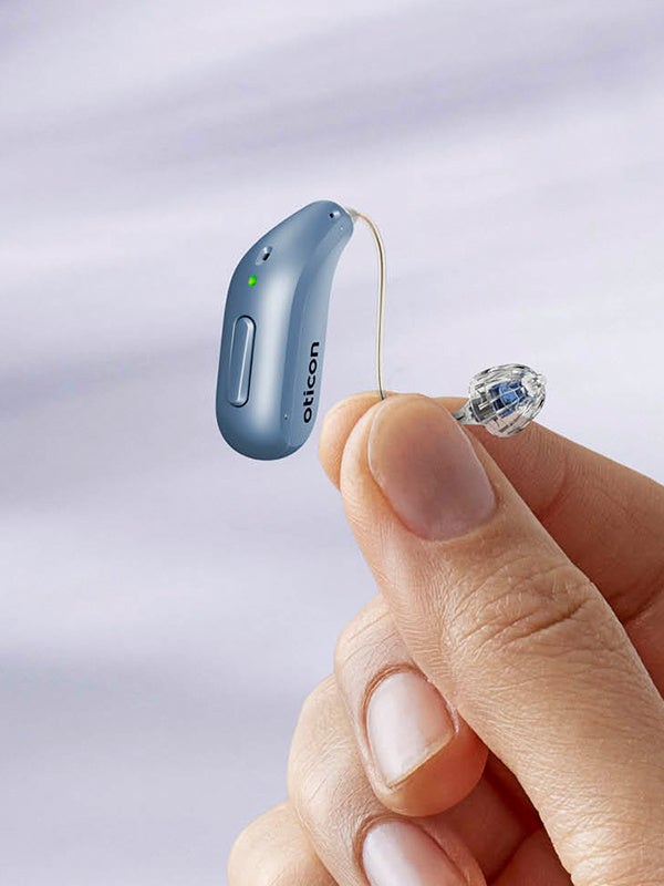 さらに、オーティコン史上最小の充電式耳かけ型(ミニRITE)でありながら、次世代のBluetooth®オーディオ規格であるLE Audio Bluetoothを含む、最新のワイヤレス通信技術に対応しています。刷新されたスピーカーとの組み合わせで音響面に加え、人間工学に基づくデザインで装用感を高め、オーティコン史上最速の充電器(33%充電時間短縮)も装備しました。補聴器本体をタップするだけで接続したスマートフォンからの電話に出る、切るといった操作が可能なタップコントロールが新たに加わるなど、ユーザーの利便性を様々な角度から高めています。
