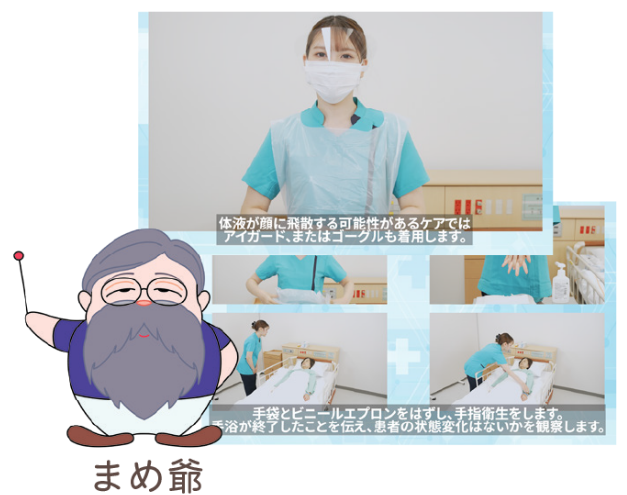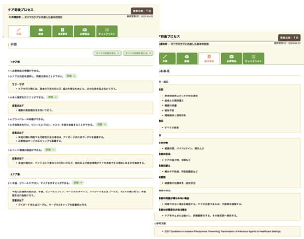 ・看護手順書と連動した最新の技術映像を看護の 専門家チームが制作