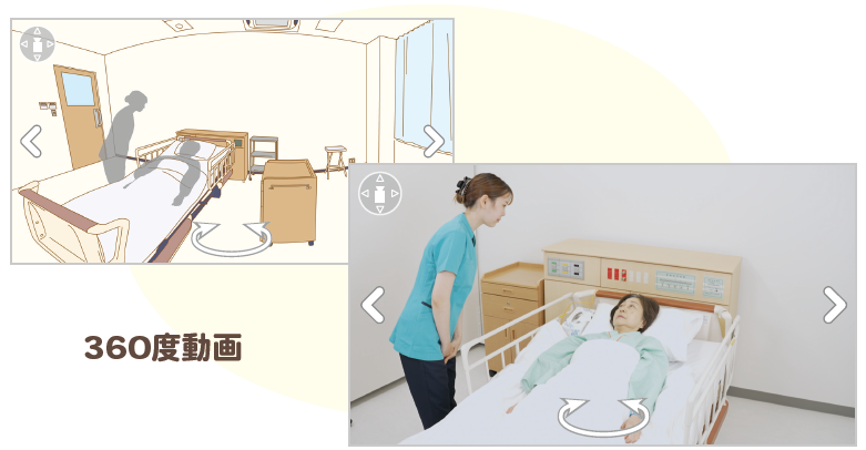 技術の進歩とともに目まぐるしく変化する医療と看護に対応できるように、技術映像、講義等を最新情報に常に更新します。より効果的な学習と実践を考えて、複数の視点から確認が必要な看護技術について360度好きな角度で確認できる映像を随時追加、また看護手順書と実用物品を集約したビジュアルポケットブックの提供等、臨床の現場に役に立つコンテンツを提供していきます。
