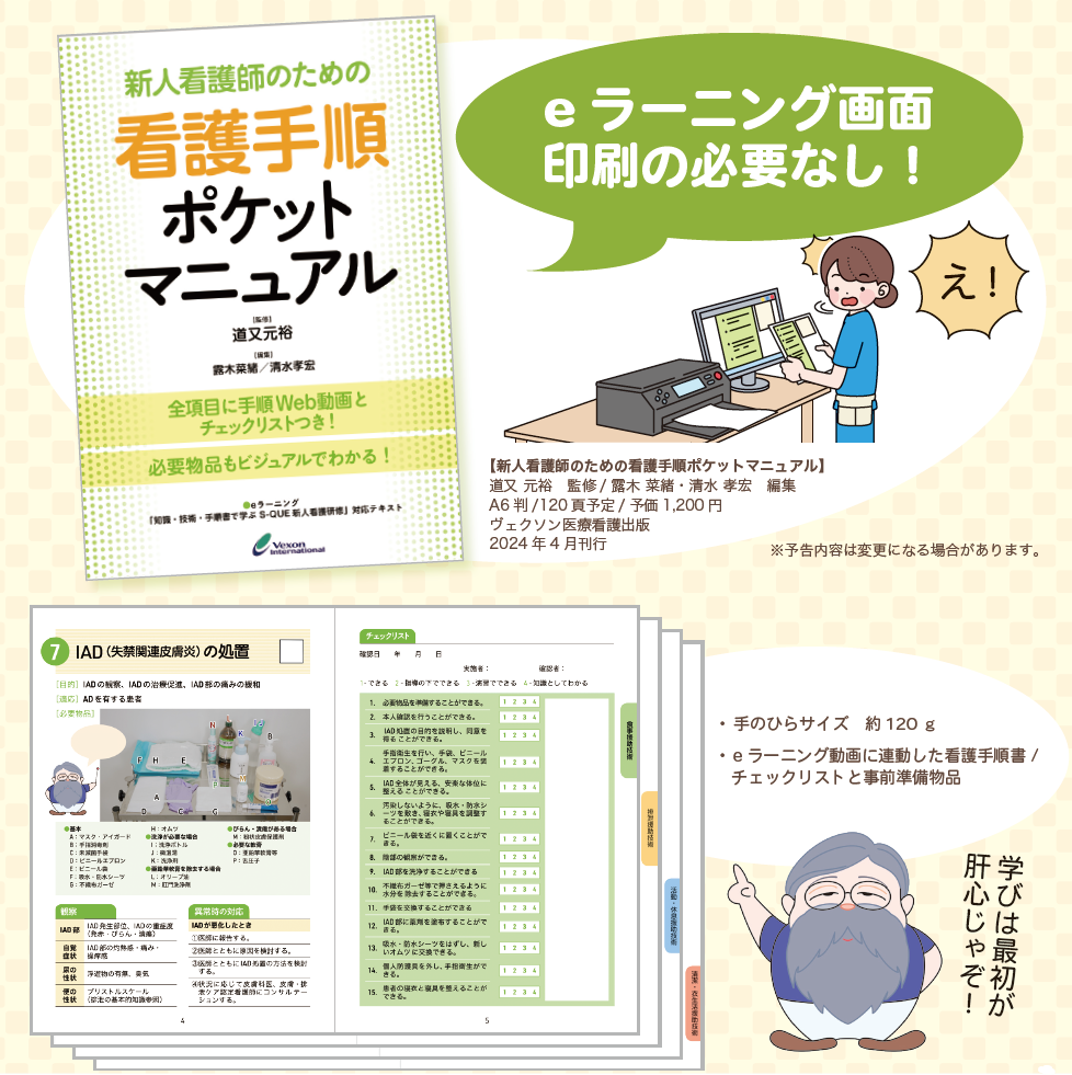 2024年3月までにお申込みいただいた病院様には、eラーニングに連動した「看護手順ポケットマニュアル」を毎年贈呈というオープニング記念特典もございます!