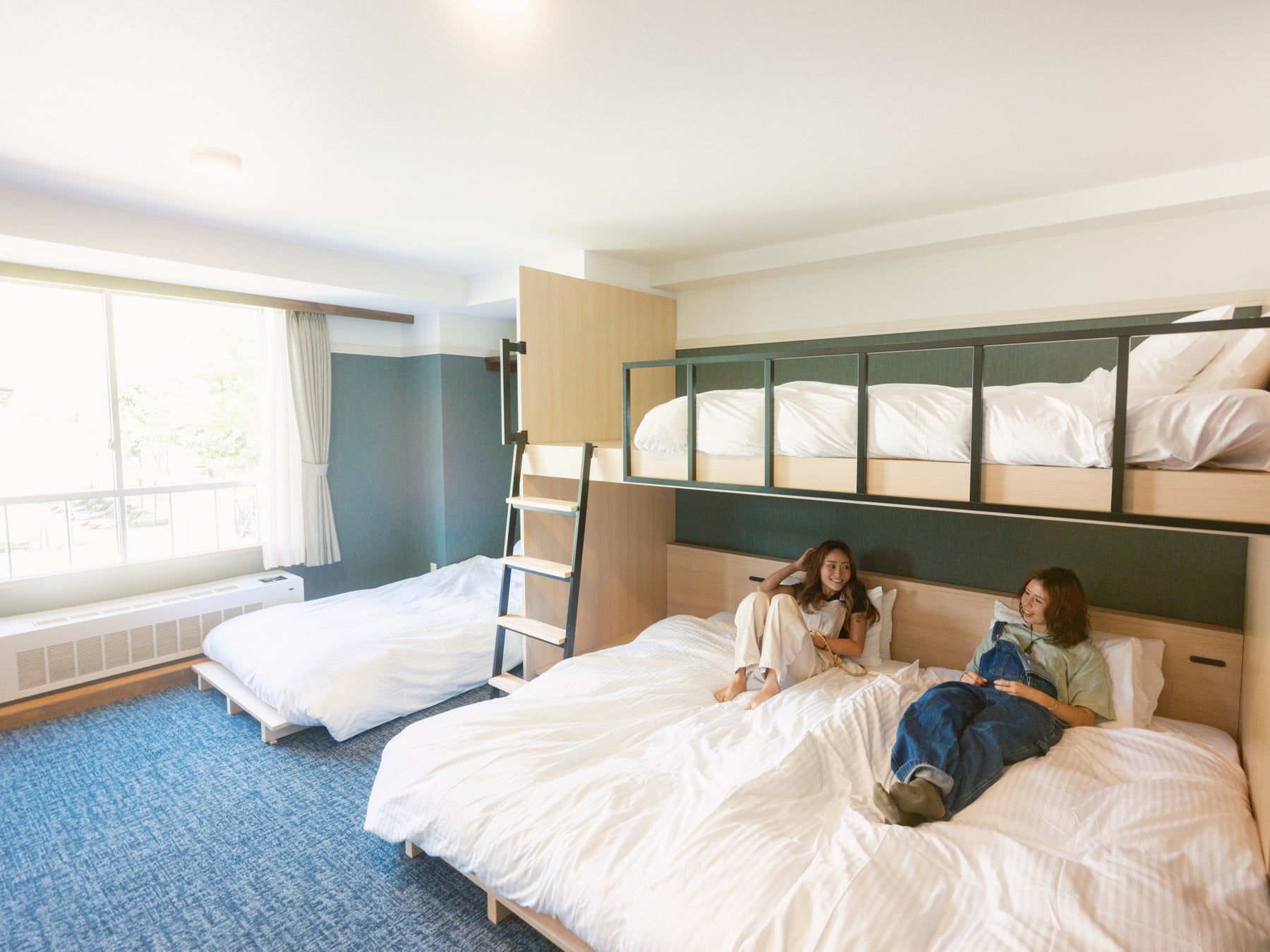 2024年10月に大規模な客室の改装を行い、2段ベッドタイプの客室をご用意しました。ファミリー向けに広々と設えた室内は最大5名様まで泊まることができ、秘密基地のような構造にお子様の心も弾みます。さらに、段差の少ない広々としたつくりのため、小さなお子様がいらっしゃるお客様にも安心してゆったりお過ごしいただけます。