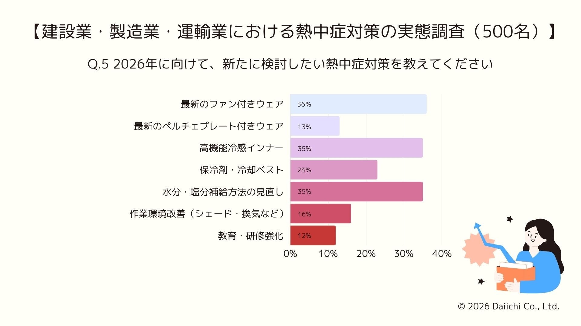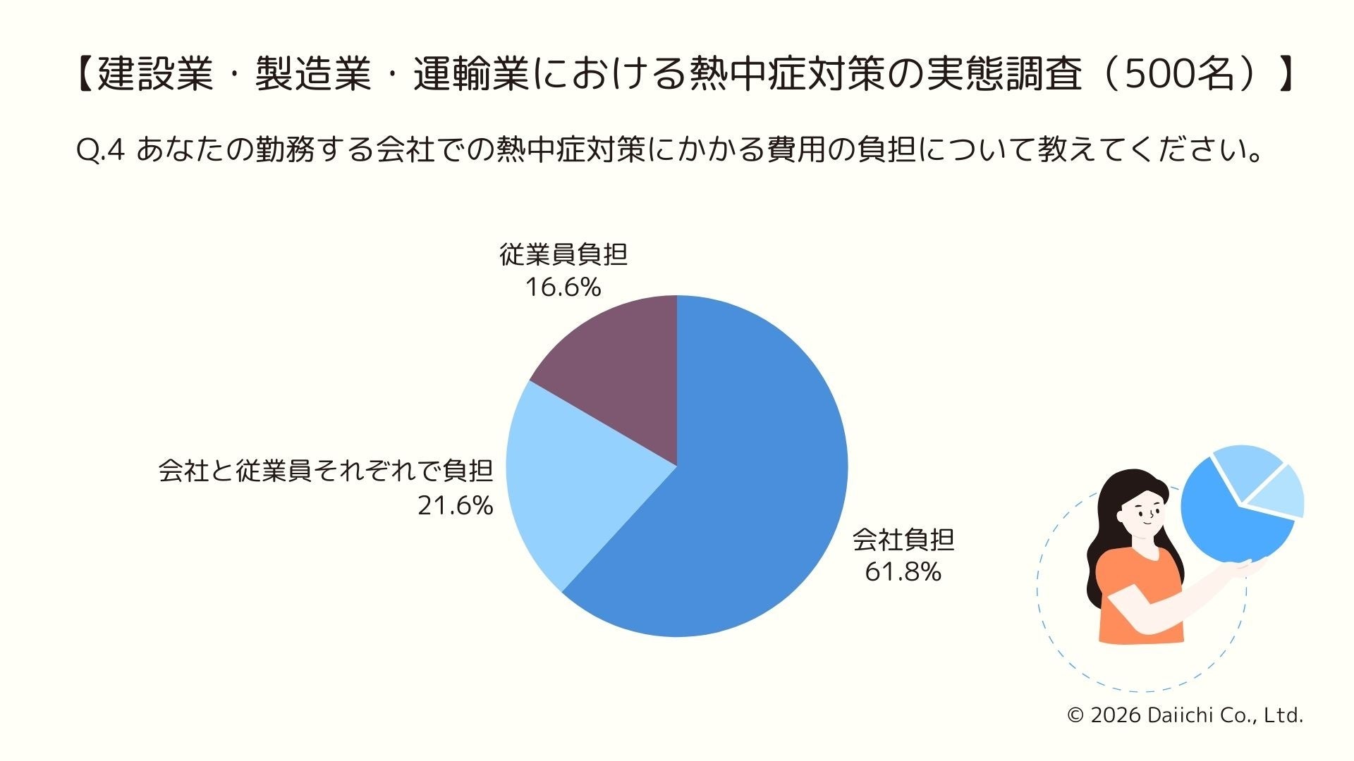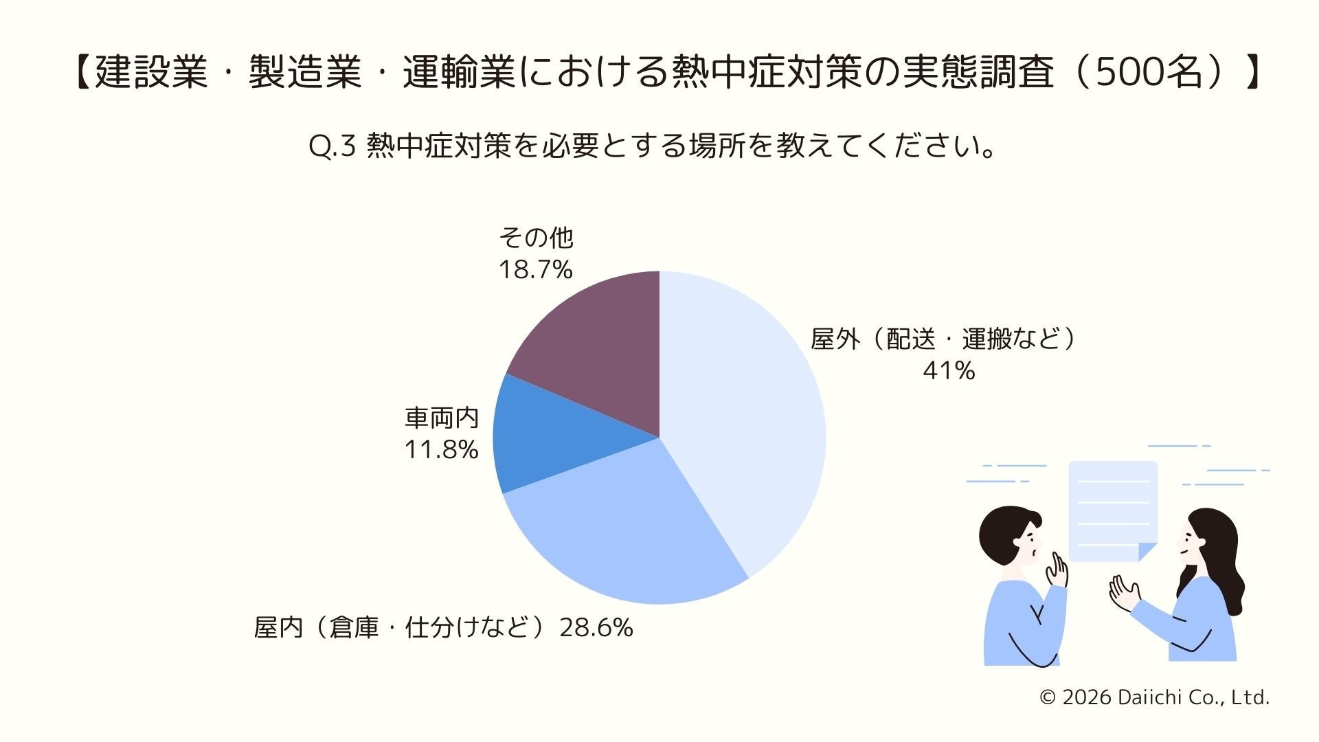株式会社ダイイチ(本社:神奈川県横浜市)は、建設業・製造業・運輸業を中心とした企業勤務者500名を対象に、企業における熱中症対策の実態調査を実施しました。