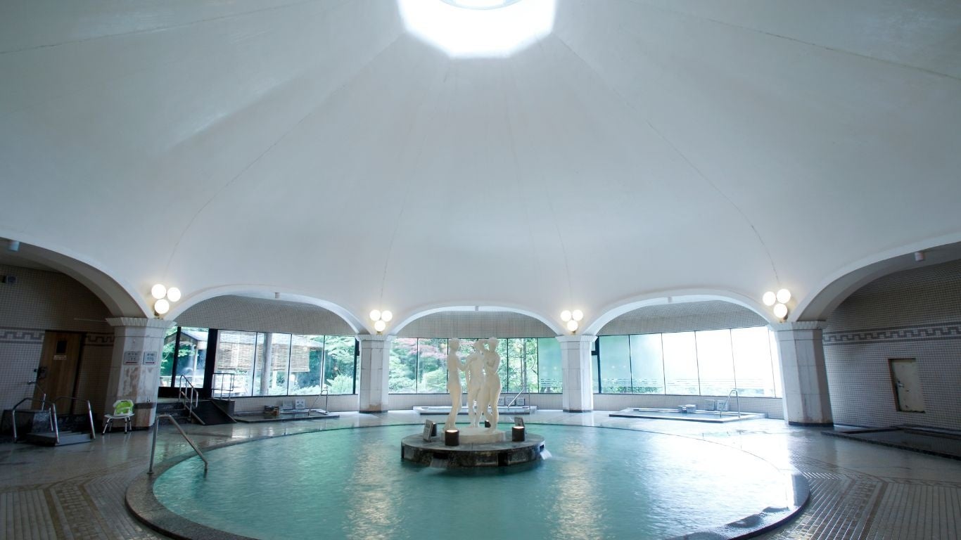 大浴場はゆったりとした優雅な空間でくつろげるローマ風呂。 露天風呂では季節の移り変わりを映す日本庭園を堪能でき、食塩泉・硫黄泉・鉄泉の3つの泉質をお楽しみ頂けます。