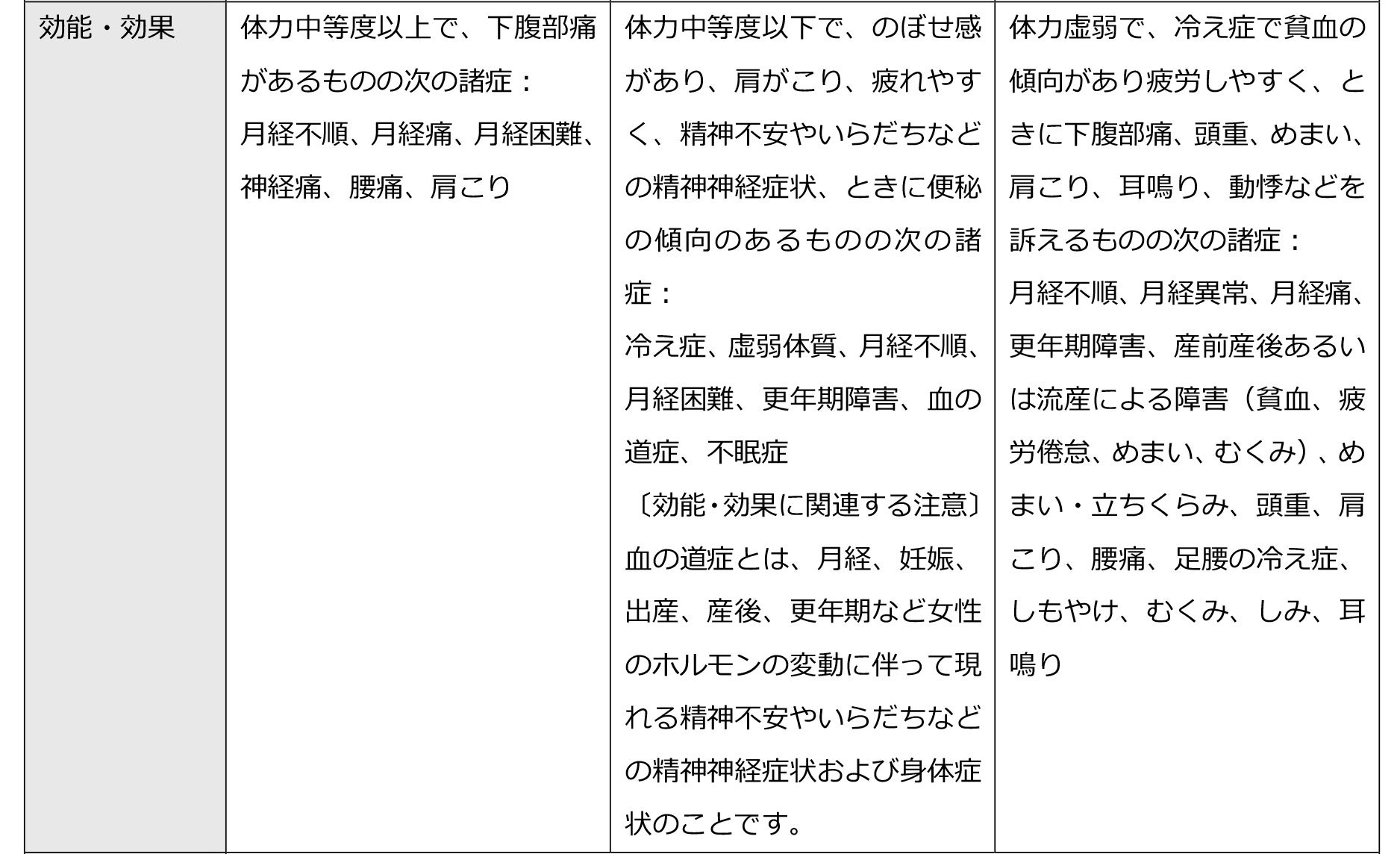 血のめぐりがよくない状態が長く続くと、痛みやコリの原因になるばかりか、栄養やエネルギーが不足し、子宮筋のはたらきが低下するなど、女性ホルモンのバランスが乱れる原因にもなります。血の滞りを取り除き、痛みを和らげるはたらきに優れています。