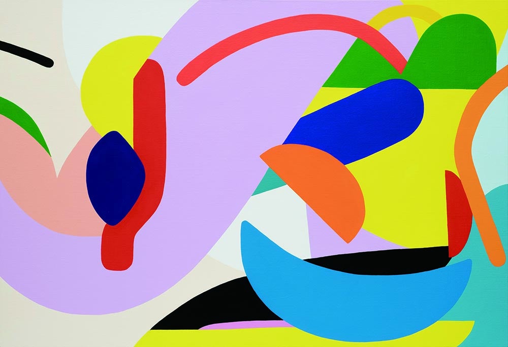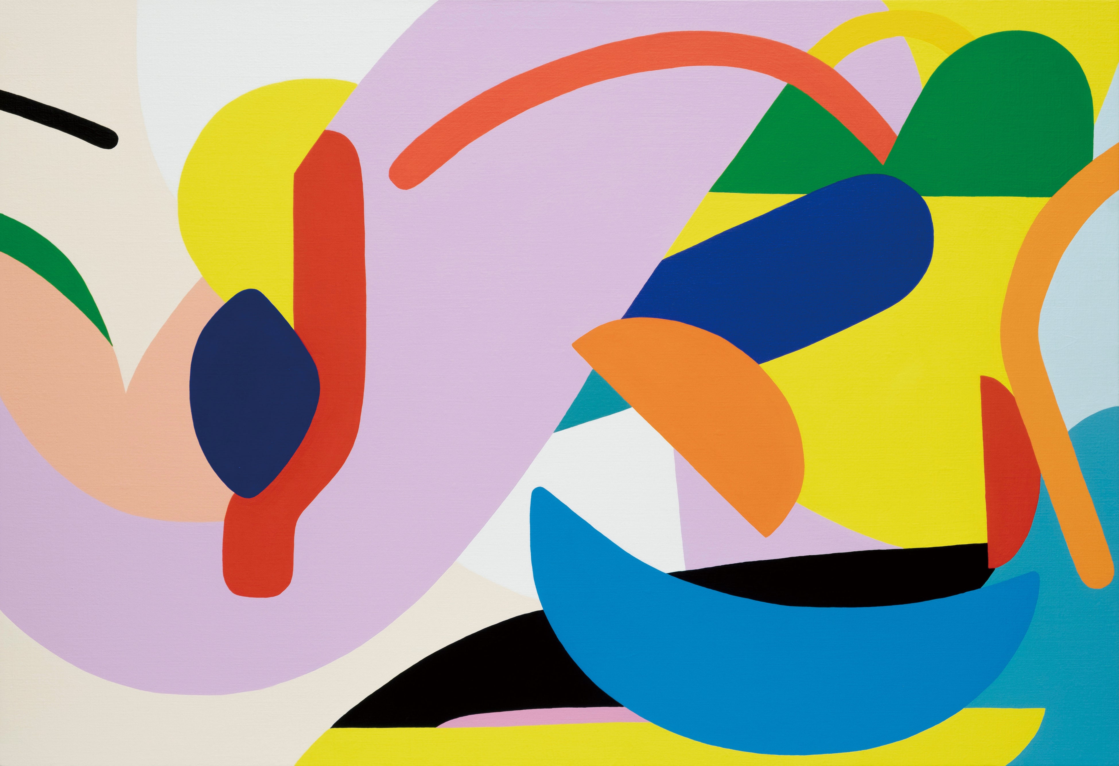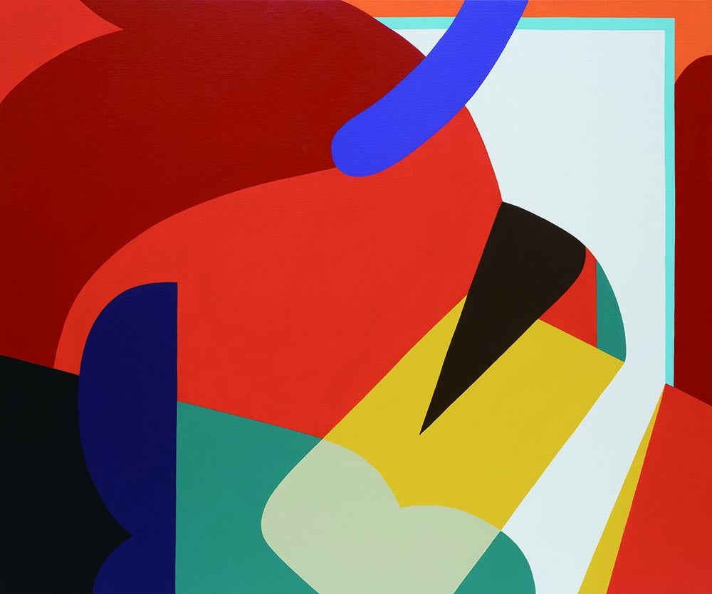 彼は実在のモチーフのスケッチをもとに絵画を作り上げる。空間を無くし、何物をも連想させない形を使う。