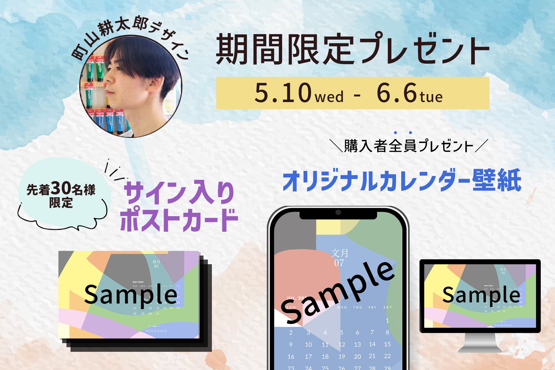 FAVORRICに町山耕太郎が参加したことを記念して、下記期間中FAVORRIC公式サイトでご購入のお客様へ先着30名様にサイン入りオリジナルポストカードを、さらにご購入者全員に町山耕太郎デザインのオリジナルカレンダー壁紙をプレゼント!