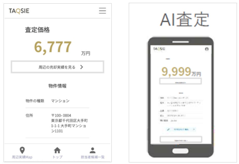 今回、TAQSIE ではご要望の多かった「目安となる価格相場」を把握することができるようにシステムの大幅なアップデートを行い、「AI 査定」機能を追加導入しました。AI 査定により「目安となる価格相場」を提示することで、AI 査定価格に対する担当者からの価格の根拠や妥当性についての説明など、お客様からのご相談に速やかにお答えすることができるようになり、次のステップにスムーズに進めやすくなりました。