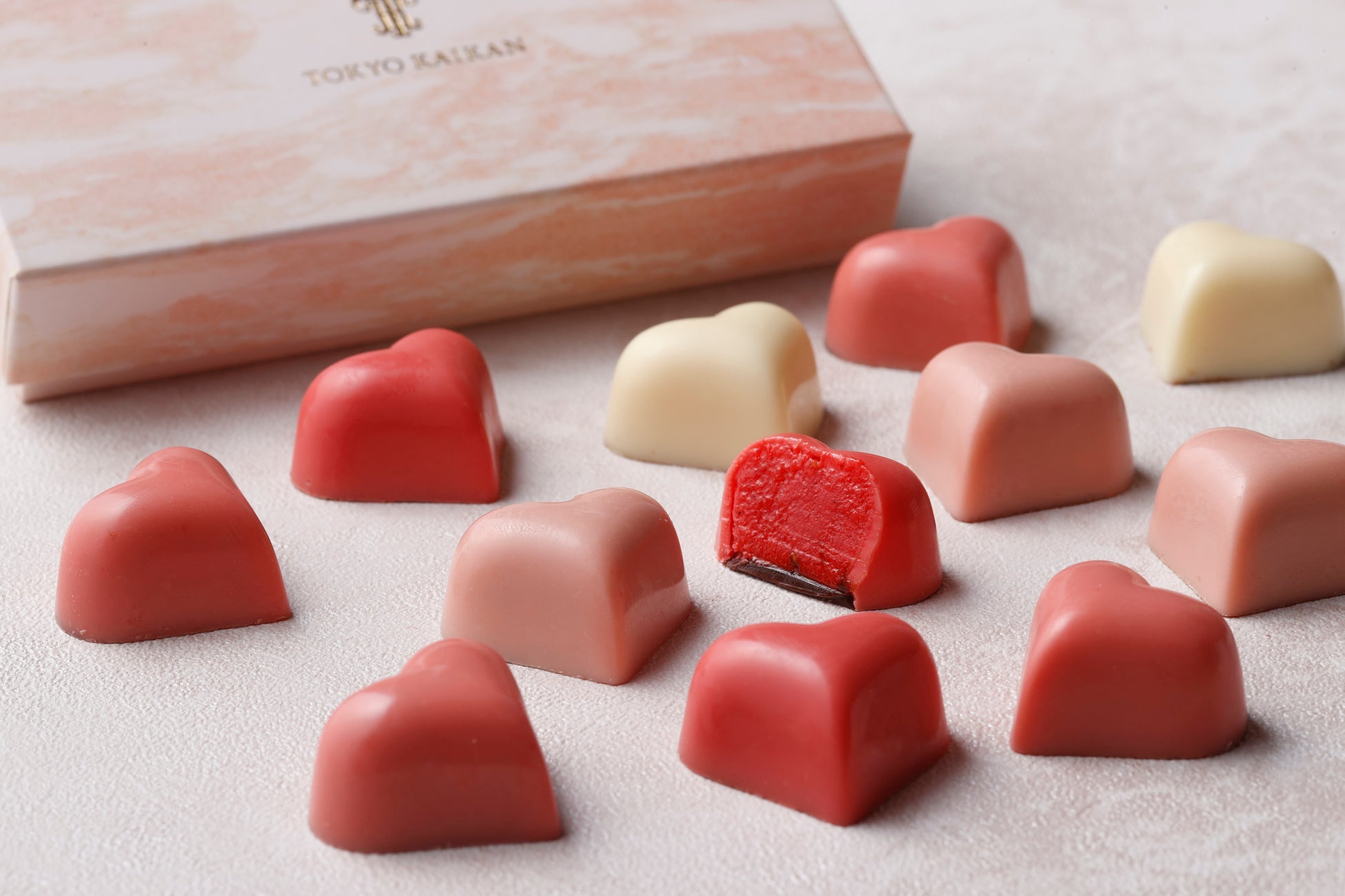東京會舘本舘のペストリーショップ「スイーツ&ギフト」とキッチンカーでは、受賞歴もある東京會舘の専属ショコラティエがフレッシュフルーツから 1 粒 1 粒手づくりする「ボンボンショコラ」や、ピンク色のグラデーションが愛らしいハート形の「ショコラ・ハート」、ルビーショコラから作る華やかな「スティックルビーショコラ」、ビターな大人の味わいの「オランジェット」といった、贈る相手に合わせてお選びいただける商品をそろえています。
