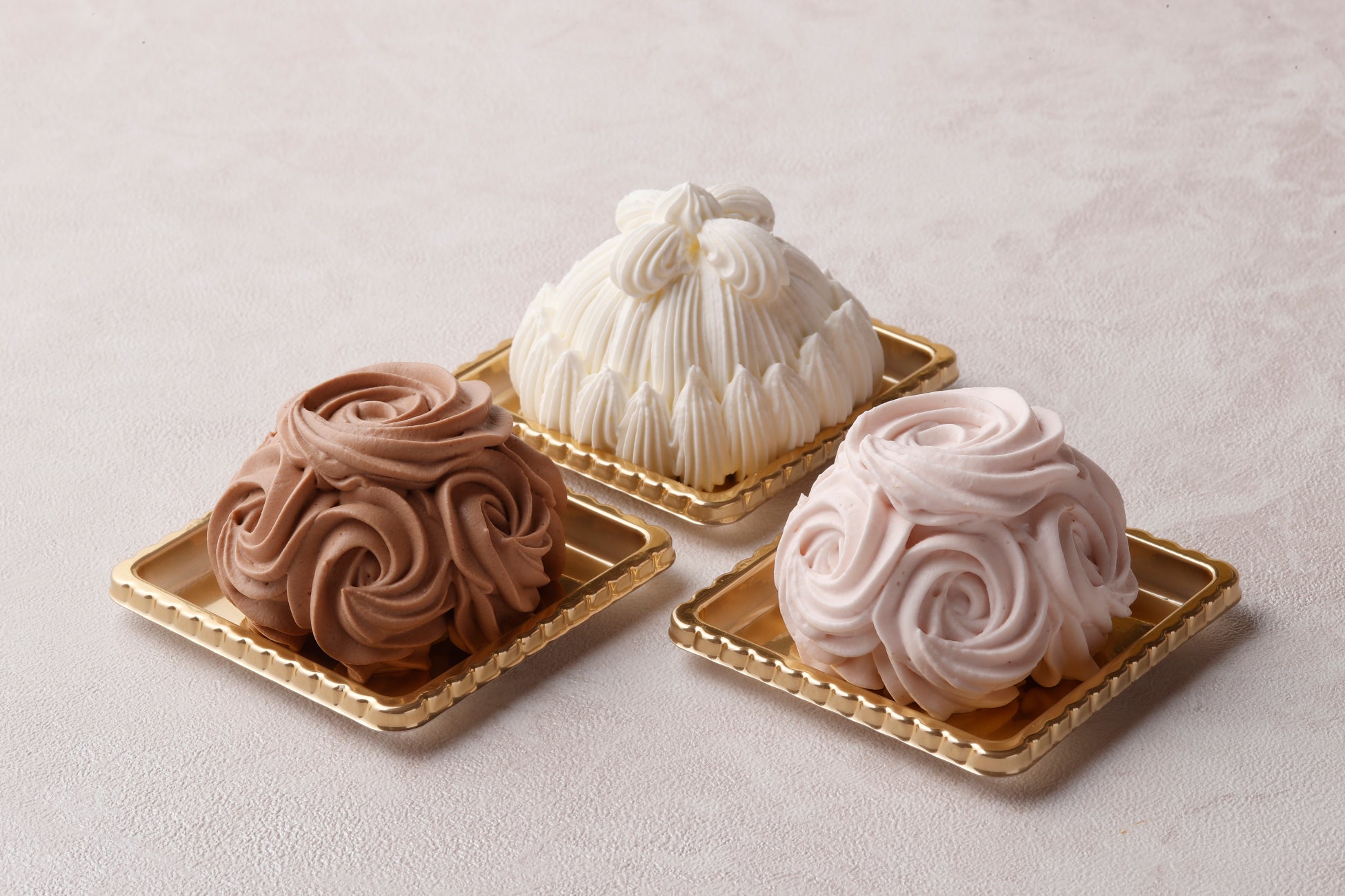 通常のマロンシャンテリーをミニサイズにし、一度に3種のフレーバーを楽しめるお得なセットです。今冬のセットでは、定番の「マロンシャンテリー(中央奥)」のほか、「フランス産のマロンとショコラのプレミアムマロンシャンテリー」と同じクリームを使った「マロンシャンテリー ショコラ(左手前)」、「マロンシャンテリー ストロベリー(右手前)」をご提供します。