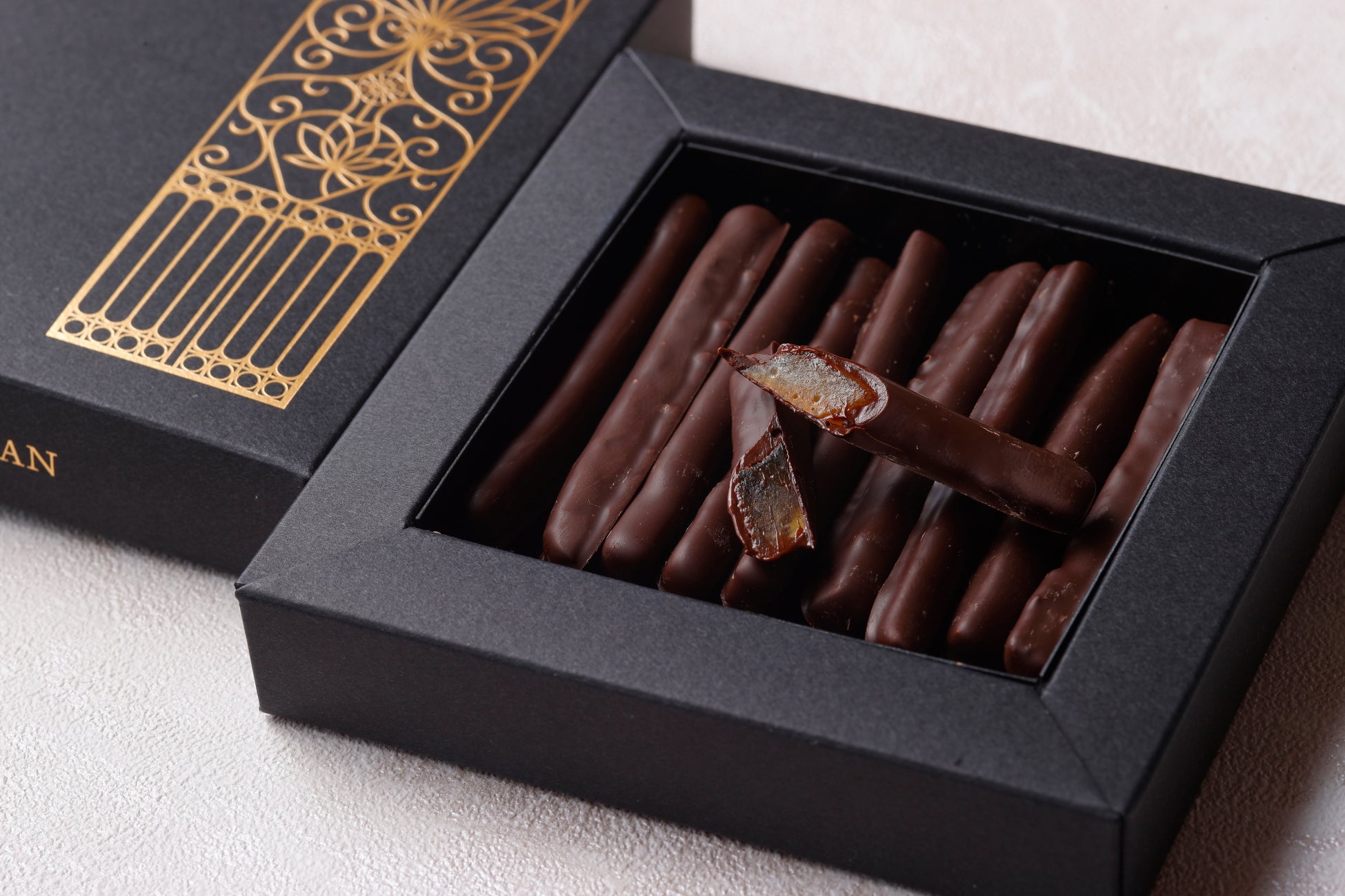 オレンジピールをダークチョコレートでコーティングしたお菓子です。さわやかなオレンジの皮の苦みと、深みのあるチョコレートが織りなす大人の味覚をお楽しみいただけます(60g 入り)。