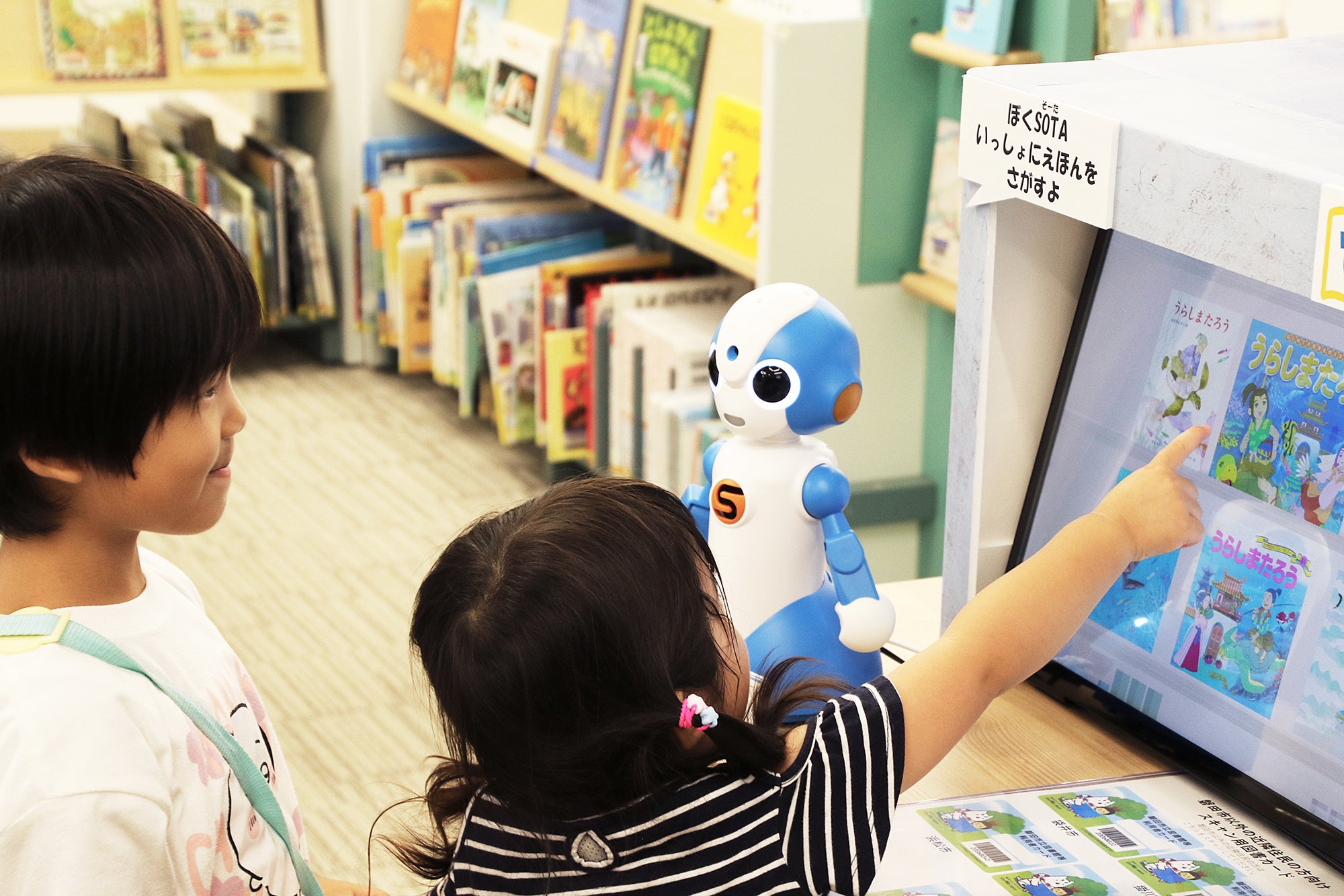 静岡県磐田市は、ロボットの質問に答えていくとAIがその子に合った絵本を推薦してくれるシステムを図書館に設置しました。