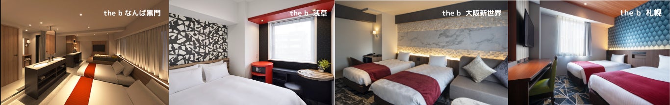 ビジネスパーソンや都市観光客などをターゲットにした都市型ホテル「the b hotels」を運営するホテル事業者です。2023年12月現在、全国16ホテルを運営し、全国主要都市の交通利便性に優れたエリアに展開しています。2023年には、the b なんば黒門(6月)、the b 浅草(7月)、the b 大阪新世界(12月)、the b 札幌(12月)の4施設にて新規開業いたします。