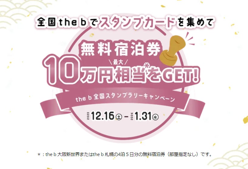 the b に宿泊してカードを集めて10万円相当(*1)の無料宿泊券GET!