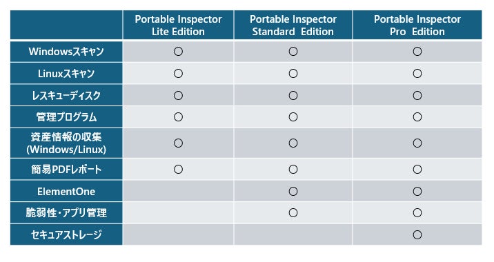 さらに、付属の管理プログラムにより運用管理の負担を軽減し、限られたリソースの中でも効率的かつ効果的なセキュリティ対策が可能です。Portable Inspector Liteは、中堅・中小企業のお客様が安心してビジネスに専念できる環境を提供します。