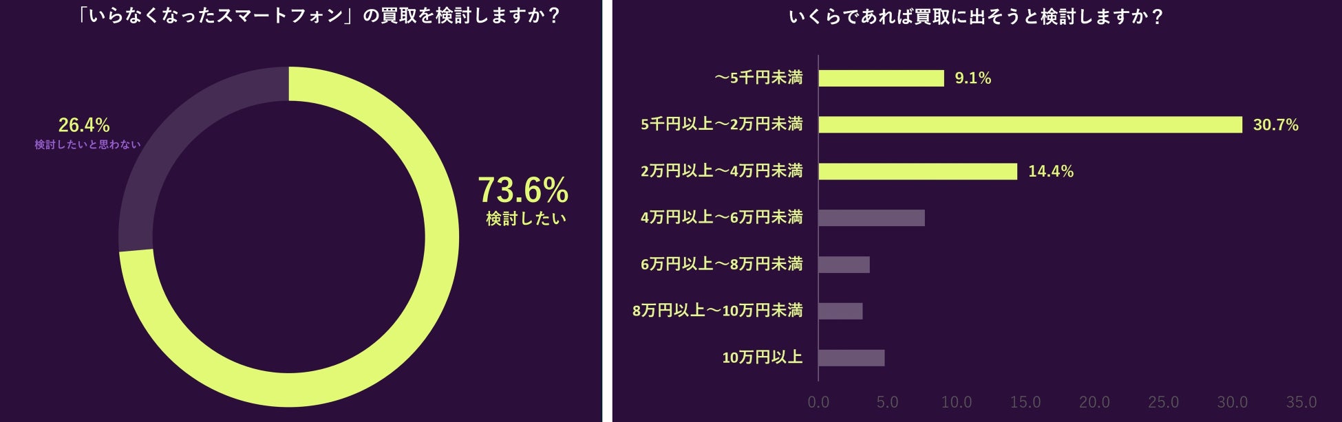 一方で7割以上が買取に意欲を示し、半数以上は「スマホの価値が4万円未満」で買取を検討(54.2%)