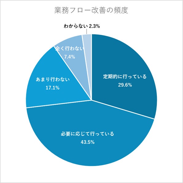 反対に「あまり行わない」「全く行わない」という部署も24.5%となり、業務プロセス改善をあまり行っていない部署も一定数あることがわかりました。