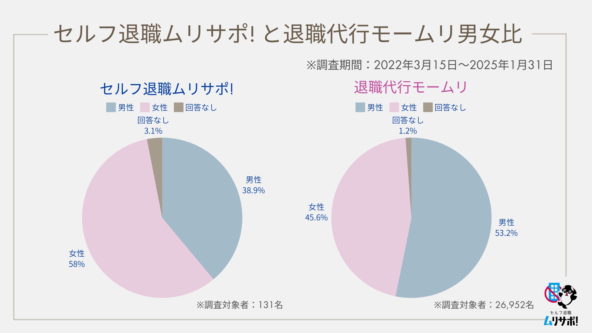 本プレスリリースでは『セルフ退職ムリサポ!』の退職データと『退職代行モームリ』の退職データの比較を公開いたします。
