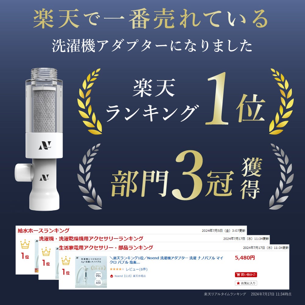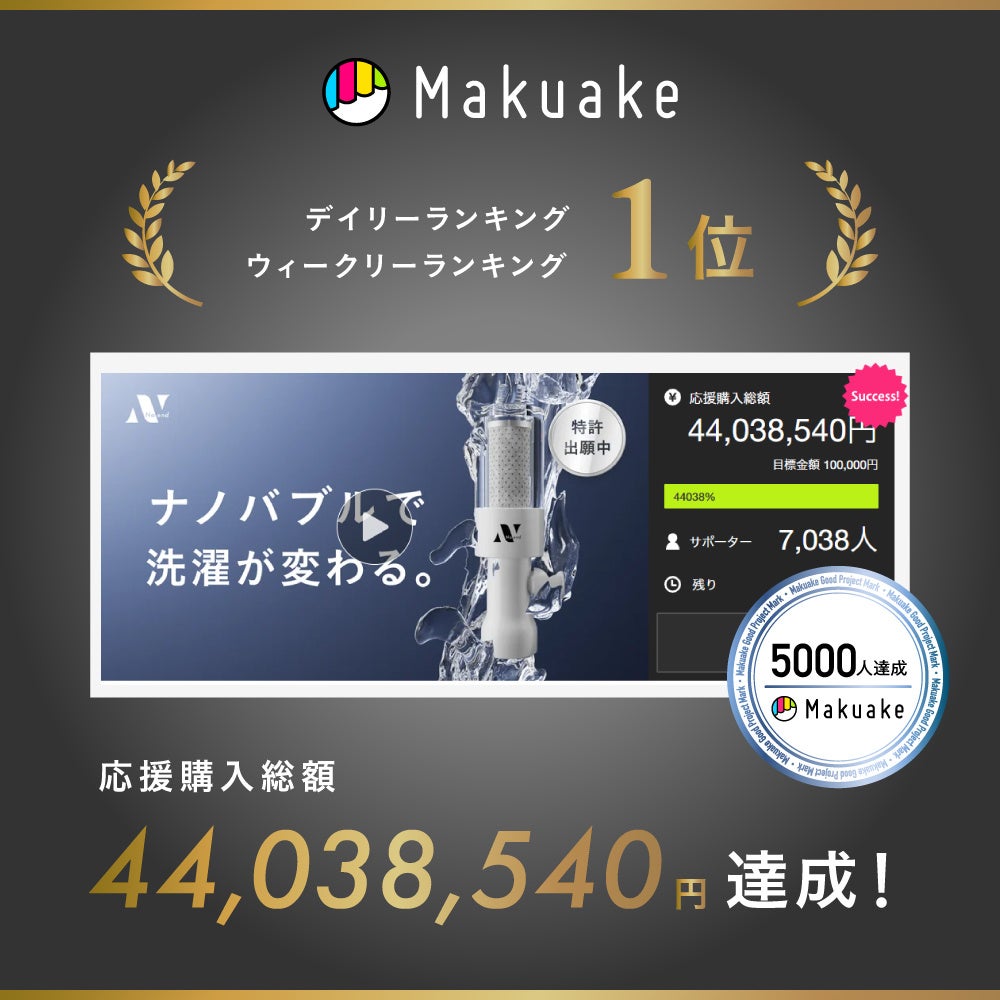 クラウドファンディングにて4,400万円を達成/デイリーランキング1位 Noendが開発した新技術 ナノバブル洗濯機アダプター「特殊エジェクター方式」の特許を取得