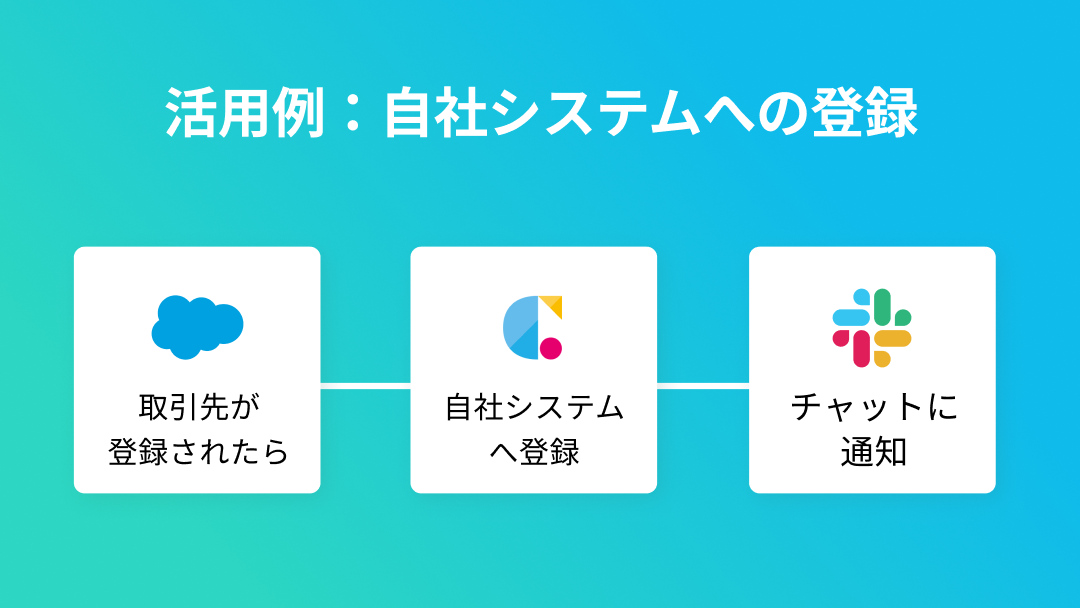 *1)iPaaS: 「Integration Platform as a Service」の略。 複数のサービスやアプリケーション連携、統合させたりするクラウドサービス。 オンプレミスとSaaSサービスの連携、SaaS同士の連携させて業務自動化の実現が可能となる特徴がある。