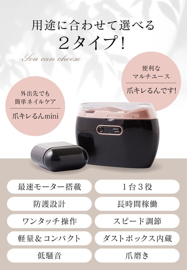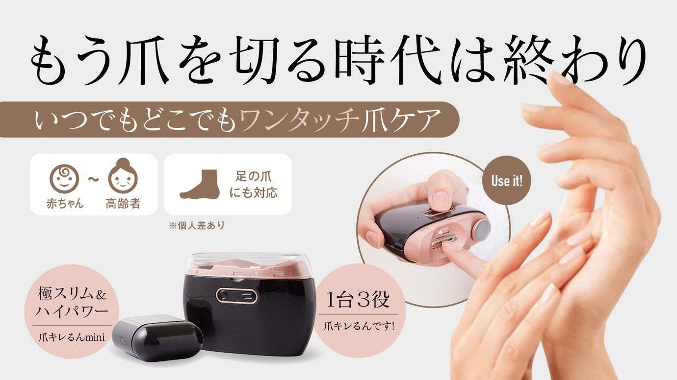 「いつでもどこでも持ち運べるmini」&「爪も皮も!1台3役でプロ級の仕上がり」 爪キレるん親子誕生!