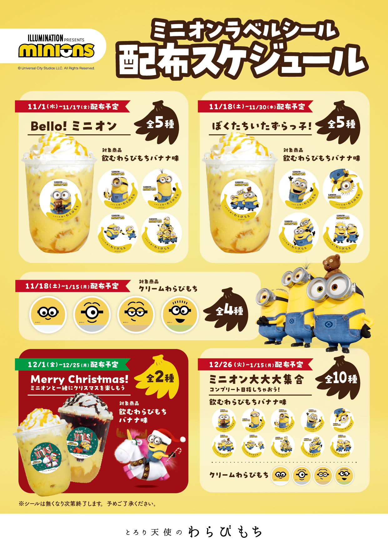 新商品「飲むわらびもちバナナ」が11/1から、「ミニオン限定シール」と共に販売開始します。