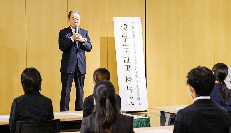 当財団は小児医学の永続的な発展のために小児医学界における将来の担い手の育成や輩出が大切であると考え、1990年に奨学金事業をスタートしました。当初は、埼玉県内の高校を卒業した医学生を対象に貸与型にて行っていましたが、将来的に経済的な負担が残らないよう、2010年に返済義務のない給付型に制度を変更しました。また、2021年度にはコロナ禍で経済的に困窮する学生が増加していることを鑑み、対象者を千葉県内の高校卒業者にも拡大しました。さらに、昨今の急激な物価上昇に応じて、2023年度、給付額を月額7万円に引き上げました。