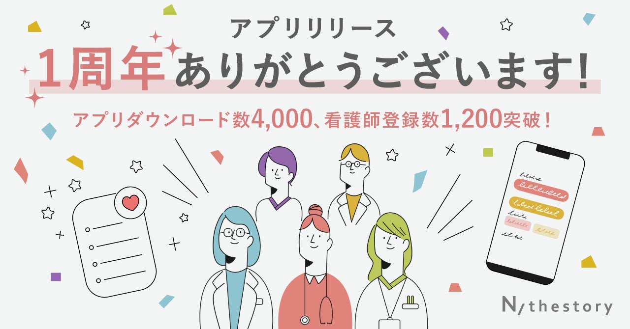 看護師のジョブマッチングアプリ「N/thestory(ジストリー)」アプリリリースから一周年!ダウンロード数4,000、看護師登録数1,200を突破