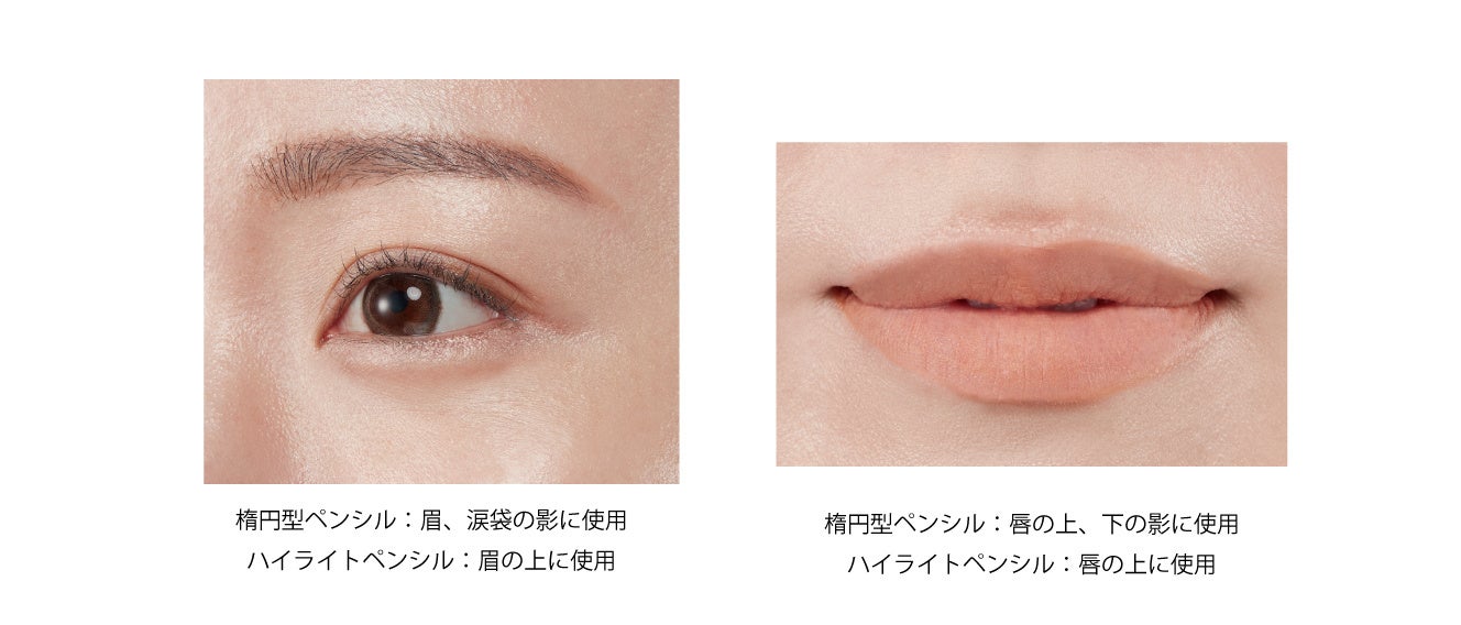ハイライトペンシル:アイブロウのアレンジ、鼻筋や鼻の頭、涙袋など、使いやすい太さが様々な部分で活躍します。